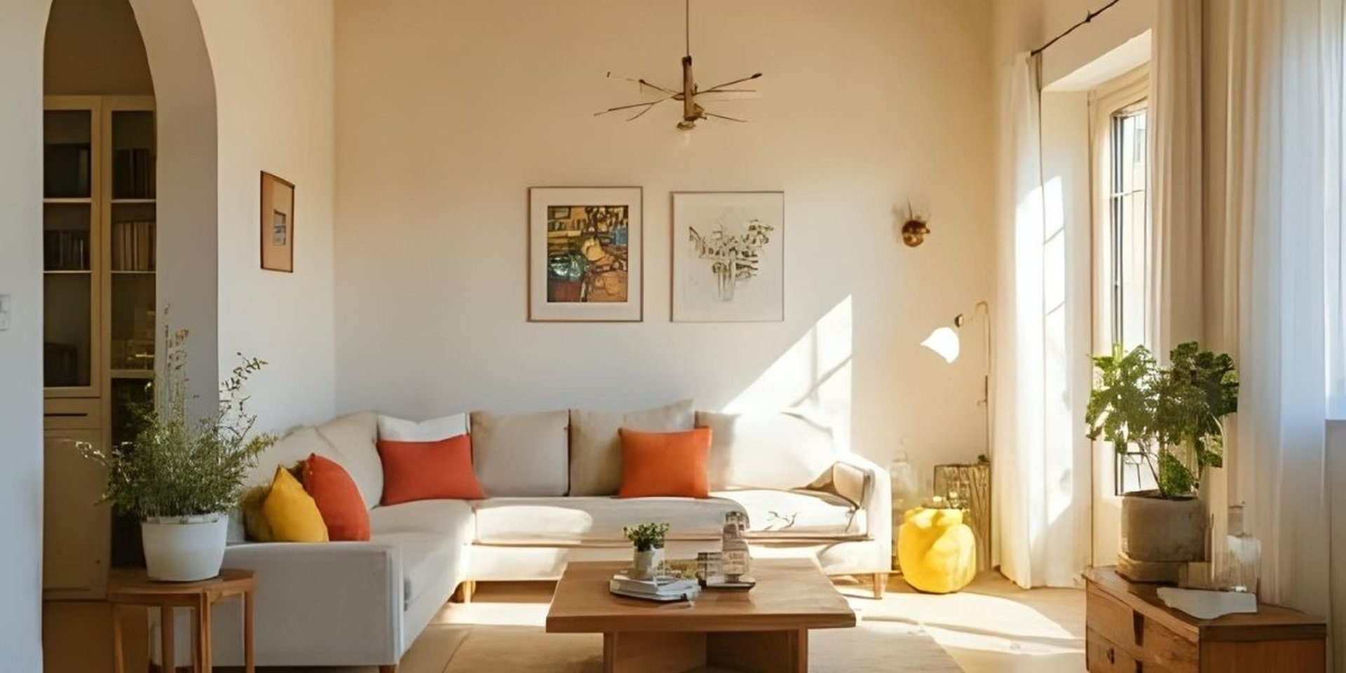 The afternoon sun drapes softly across the living room.