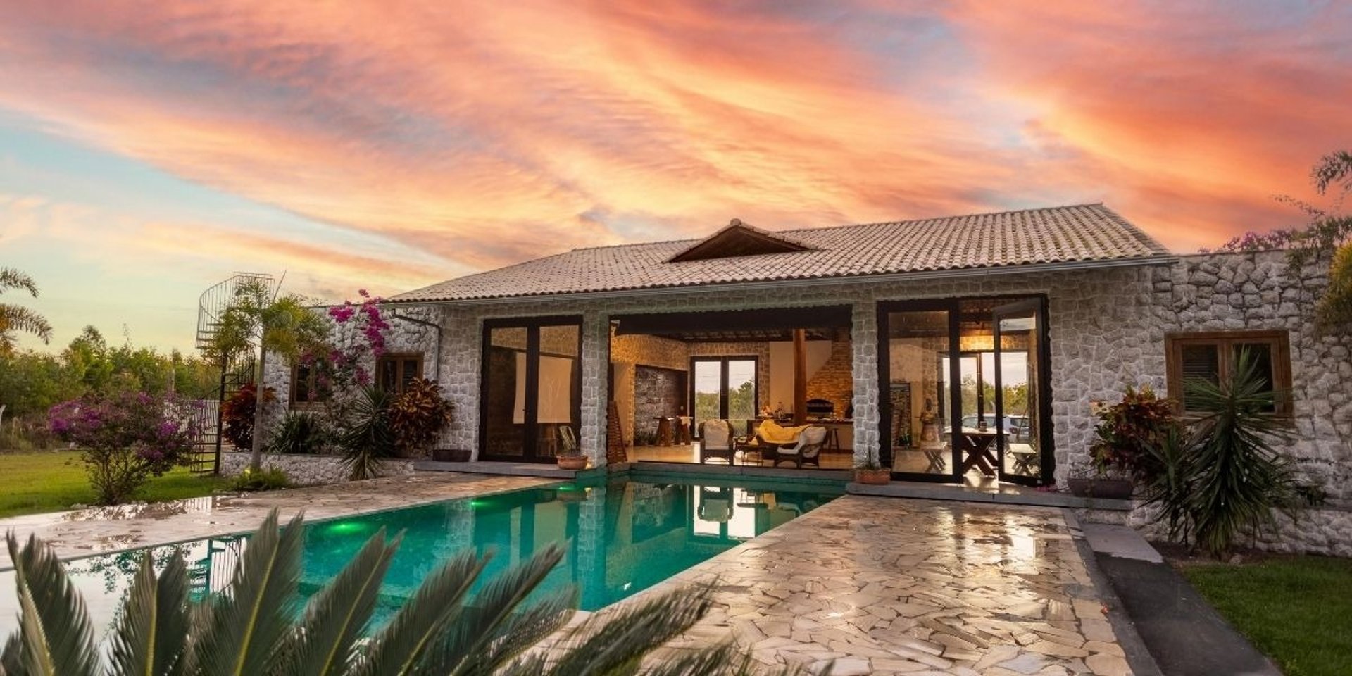 When evening falls, the home takes a breath —